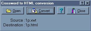 If you want to distribute crossword puzzles in the Internet, they are necessary for transforming in HTML a code Load the crossword puzzle, ready and filled with words, and press the button "Convert". Name of converted file will be same as source. Extension will be .HTML |